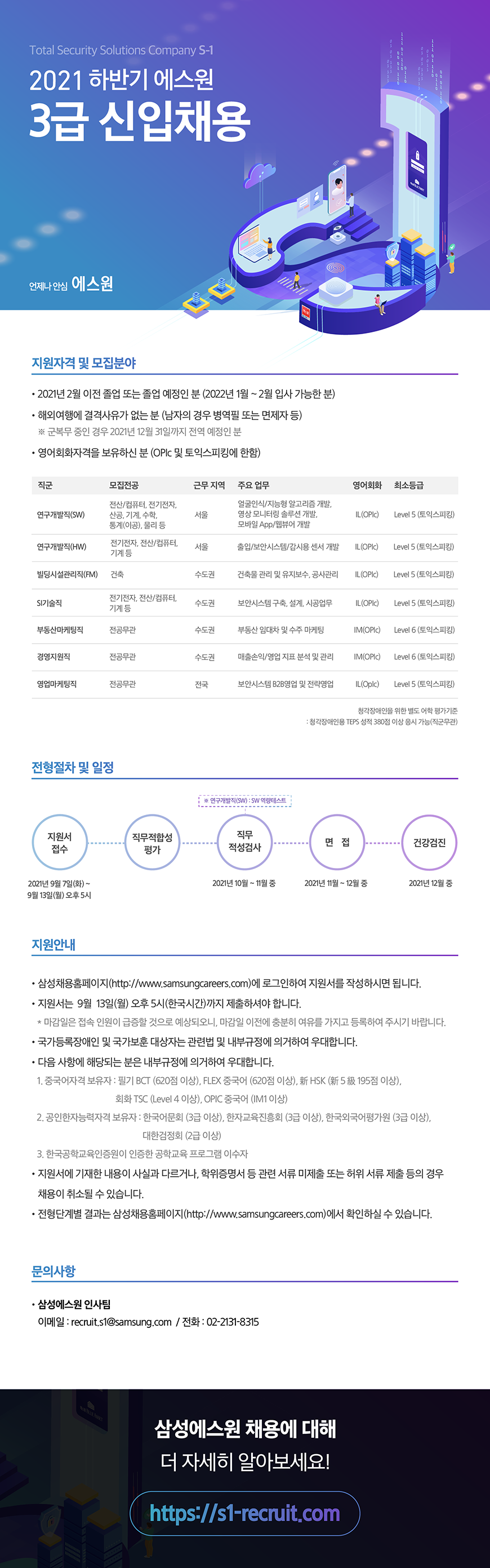 이메일 : recruit.s1@samsung.com / 전화 : 02-2131-8315