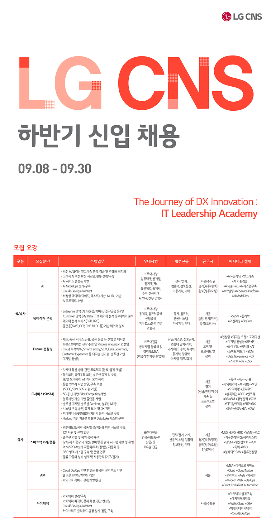 [LG CNS] (학사/석박사) 2021 하반기 신입 채용 The Journey of DX Innovation : IT Leadership Academy (~9/30)