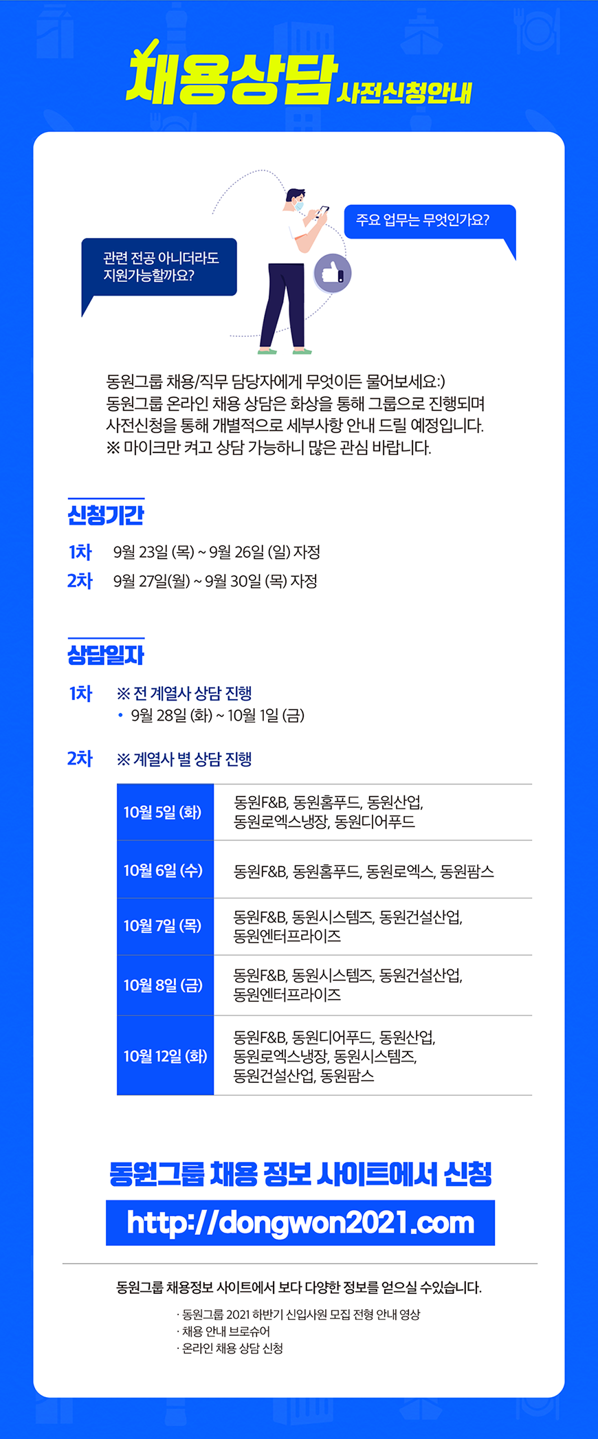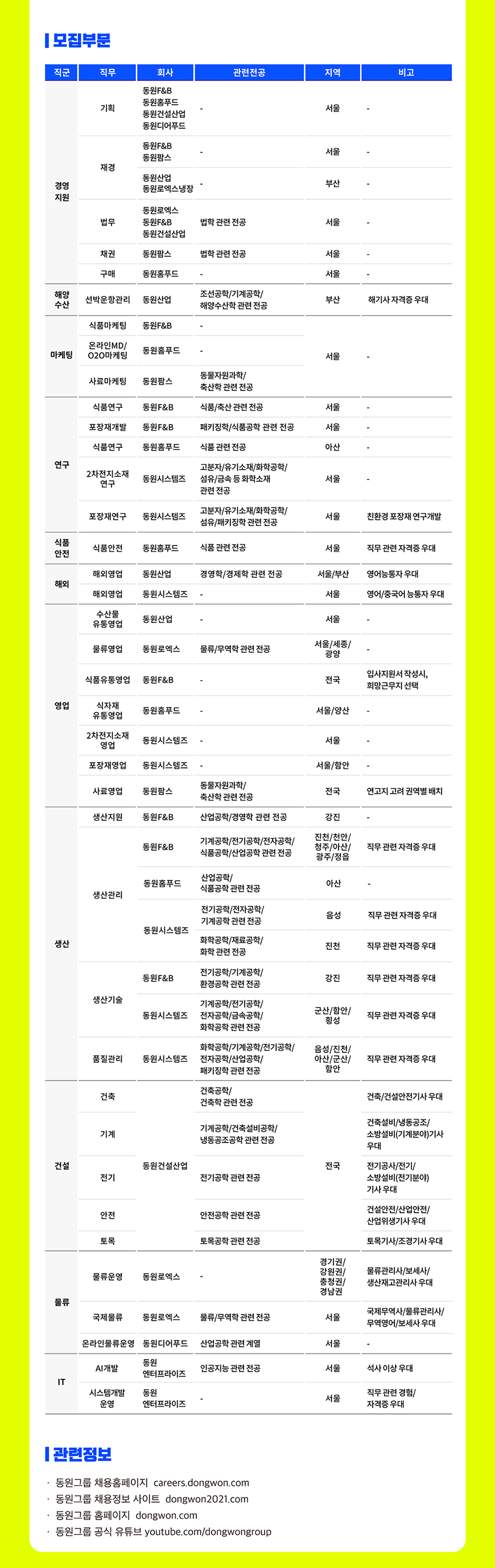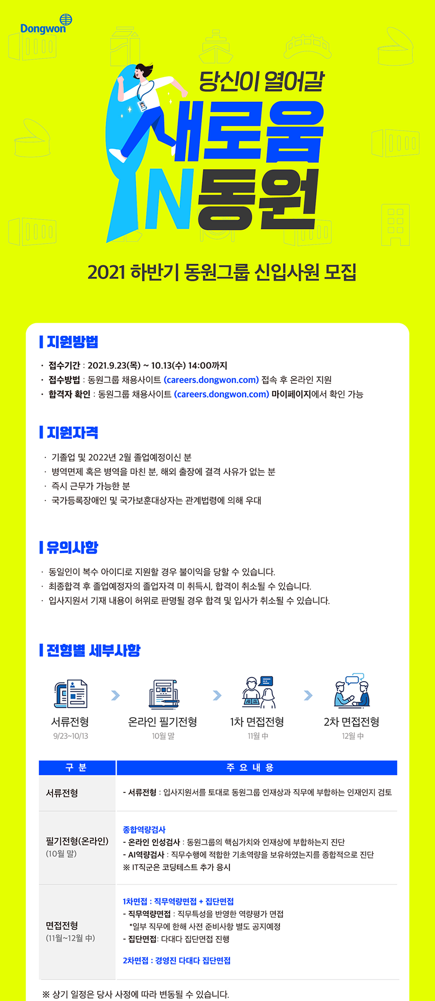 - 접수방법 : 동원그룹 채용사이트 (careers.dongwon.com) 접속 후 온라인 지원