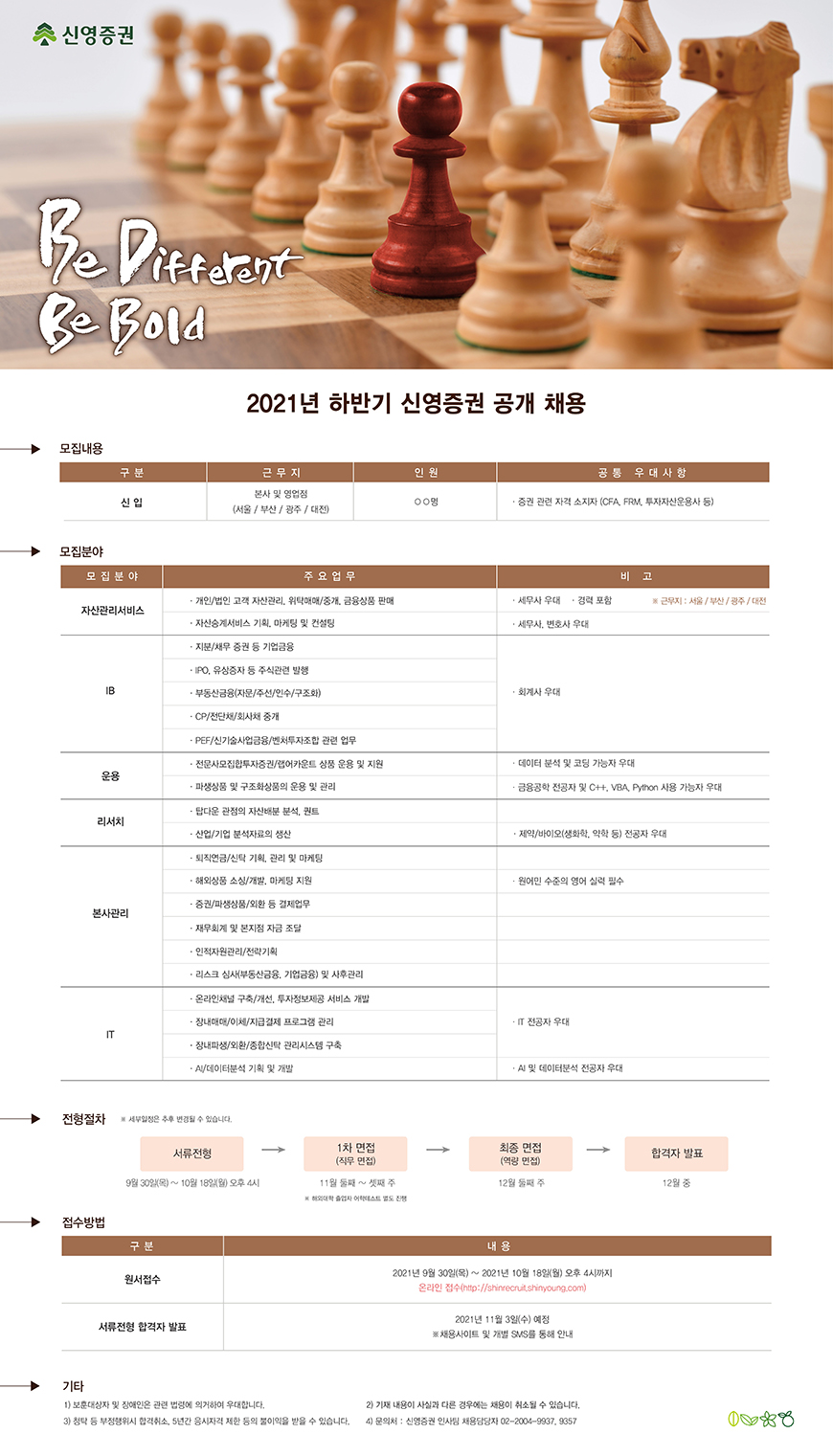 | 제목 | [채용공고] [기한 연장] [신영증권] 2021년 하반기 공개채용 | 날짜 | 2021-09-29 | 조회수 | 1163 |