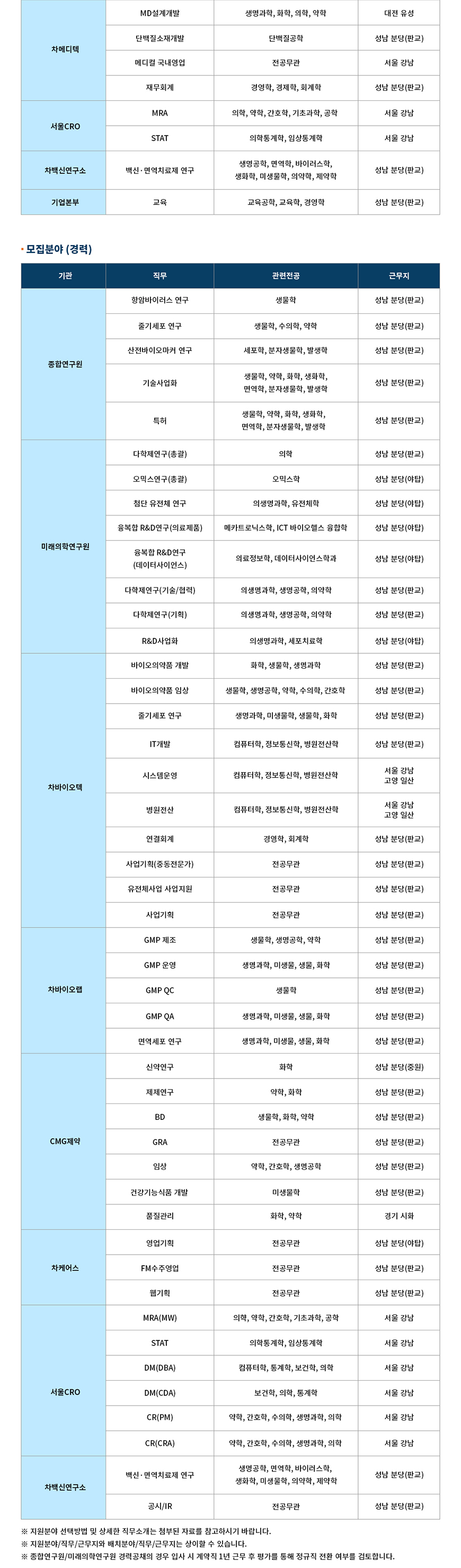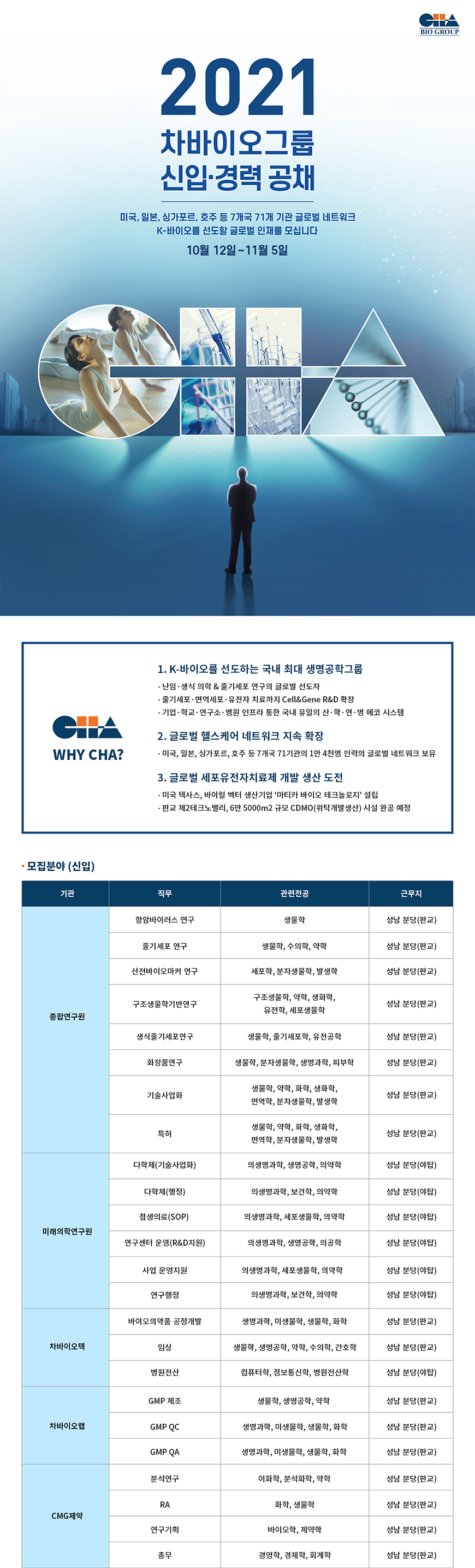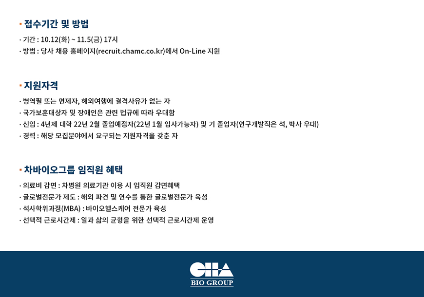 [차바이오그룹] 2021 하반기 차바이오그룹 신입·경력 공개채용 ( ~ 11/5)