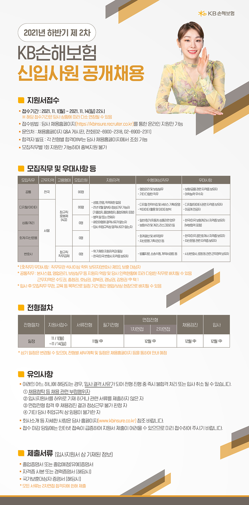 [KB손해보험]2021년 하반기 제2차 KB손해보험 신입사원 공개채용(~11.14(일))