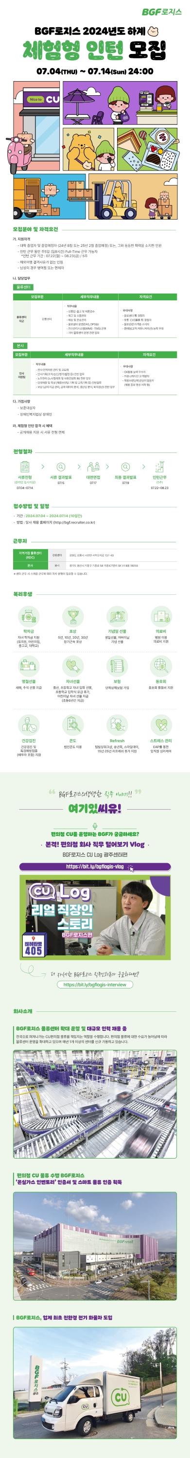 | 제목 | [BGF로지스] 2024년 하계 체험형 인턴 모집 | 날짜 | 2024-07-05 | 조회수 | 546 |
